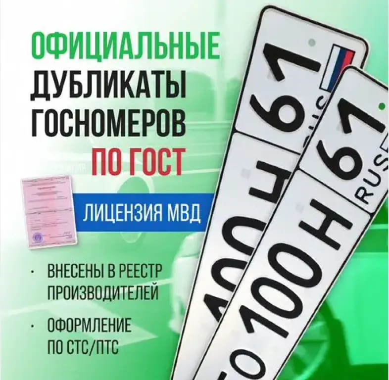 Изготовление официальных дубликатов автомобильных номеров по ГОСТ. С лицензией МВД и доставкой до Российской Федерации за 1–3 дня.