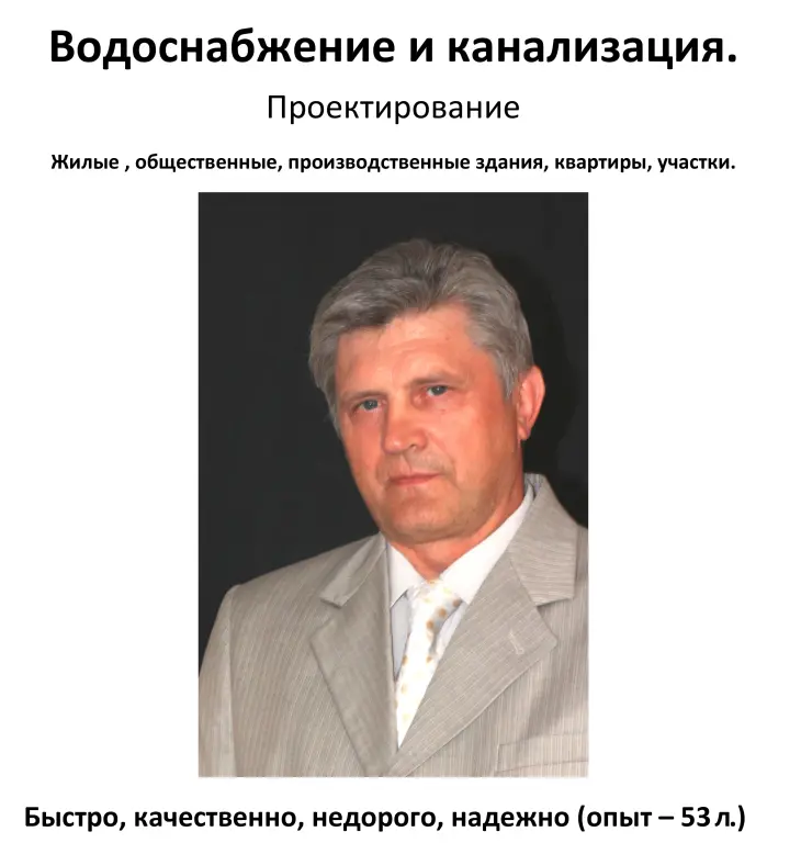 Квалифицированная разработка индивидуальных проектов внутренних и наружных сетей водоснабжения и канализации (ВК и НВК) жилых, административных и промышленных зданий, коттеджей, автоцентров, научно-следовательских институтов, клиник и др.;
